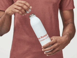 Semplice, ma efficace: la borraccia termica della CRI di Correggio è realizzata in alluminio riciclato e permette di tenere al fresco (e al caldo!) i liquidi fino a 12 ore!